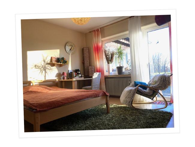 Die Lage zur Südseite beschert Sonne den ganzen Tag. Wir wohnen ländlich mitten im Grünen - ohne Lärm und Smog!